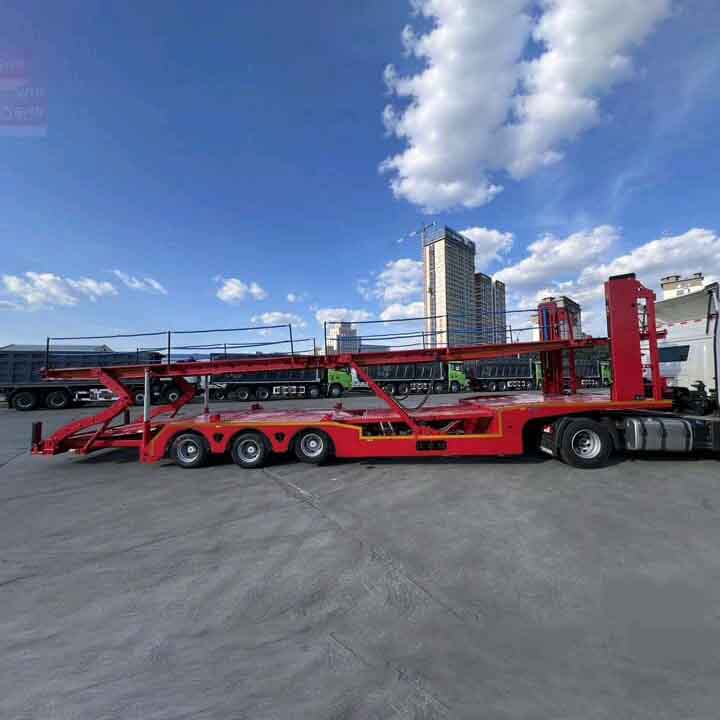 3 Oxlu 8 Avtomobil Daşıyıcı Konteynerli Yük Yarımqoşqusu, güclü və davamlı yükdaşıma qabiliyyətinə malik, yüksək möhkəm lehimli poladdan hazırlanmış avtomobillərin daşınması üçün nəzərdə tutulmuşdur. Onun ikiqatlı struktur dizaynı nəqliyyatın səmərəliliyini effektiv şəkildə artırır, həmçinin nəqliyyat prosesində avtomobilin təhlükəsizliyini və dayanıqlığını təmin etmək üçün qabaqcıl bərkidici qurğularla təchiz edilmişdir. Bundan əlavə, avtomobil həm də avtomobil logistikası sahəsində geniş istifadə olunan nəqliyyat prosesinin real vaxt rejimində monitorinqini və səmərəli idarə edilməsini həyata keçirmək üçün intellektual monitorinq sistemini birləşdirir. Korpusun hər iki tərəfi rahat panduslar və təhlükəsizlik kilidləmə cihazları ilə təchiz edilmişdir. , avtomobillərin sürətli yüklənməsi və bərkidilməsi üçün əlverişli olan, daşınma zamanı təhlükəsizliyin təmin edilməsi.