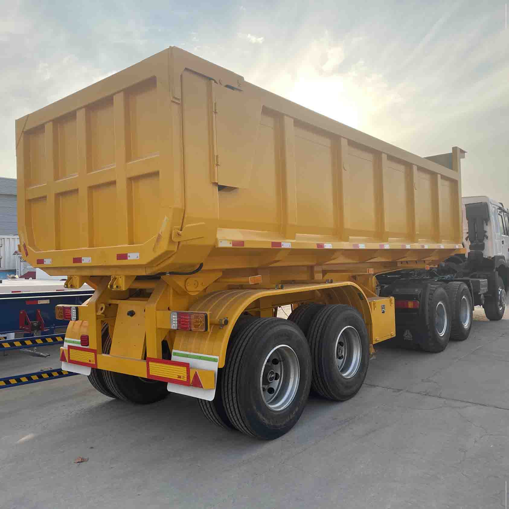Derun iki oxlu arxa tipli yarı qoşqu, güclü və davamlı bir bədən quruluşu olan, ağır yüklərə və sərt yol şəraitinə sahib olan möhkəm və davamlı bir bədən quruluşu olan yüksək güclü poladdan hazırlanmışdır. Onun unikal arxa tipli dizaynı boşaltma prosesini daha sürətli və rahat edir, bu da nəqliyyat səmərəliliyini çox yaxşılaşdırır. Bu vaxt vasitə asan işləməyi, təhlükəsizliyi və etibarlılığı təmin etmək üçün inkişaf etmiş hidrolik sistem və nəzarət sistemi ilə təchiz edilmişdir.