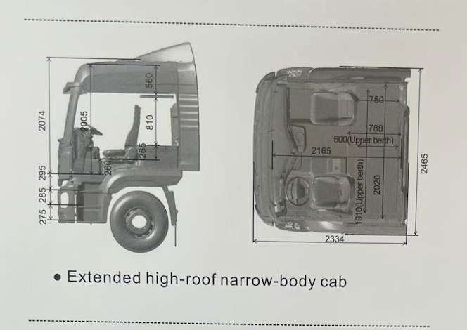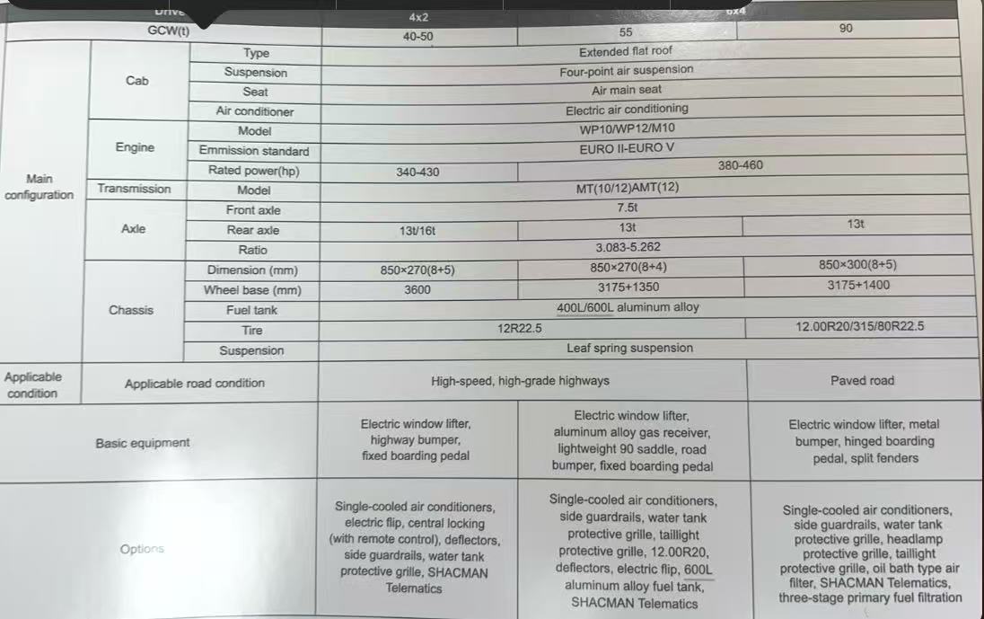 - Oxlar və asqı: ön ox insan 9.5t texnologiyası qəbul edir və arxa ox 13t və ya 16t kişi oxunu qəbul edir. Süspansiyon sistemi, ağır yüklərin təsirinə tab gətirə bilən və mürəkkəb yol şəraiti altında yük maşınının sabitliyini və dayanıqlığını təmin edə biləcək yüksək güclü polad boşqab baharını qəbul edir.